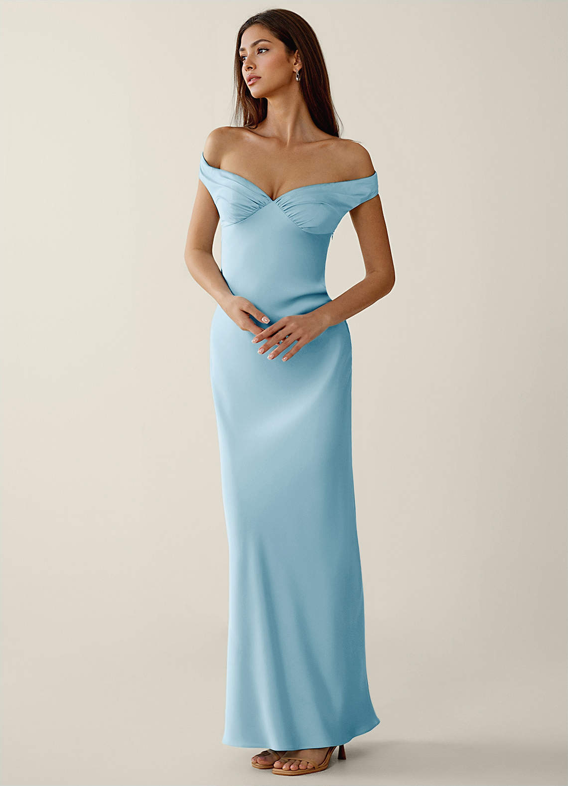 Gwendonme Sky Blue Satin Crystal Linen Prom Dress