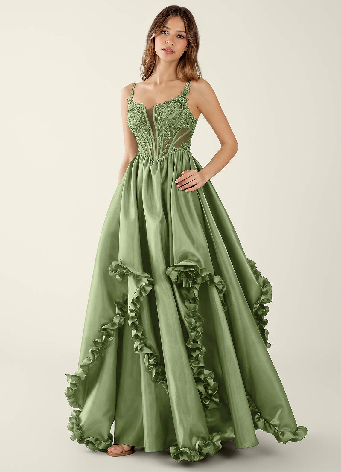 Halley Basil V-neck lace Corset A-line Prom Dress
