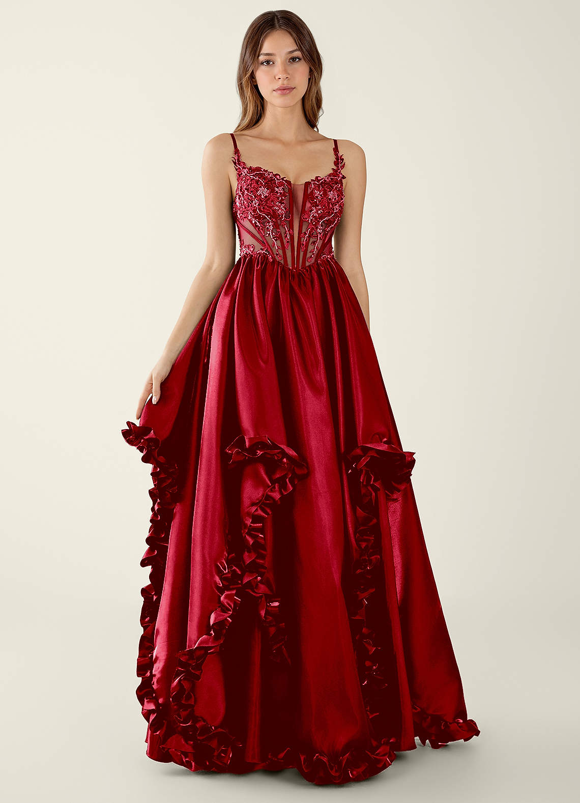 Halley Red V-neck lace Corset A-line Prom Dress