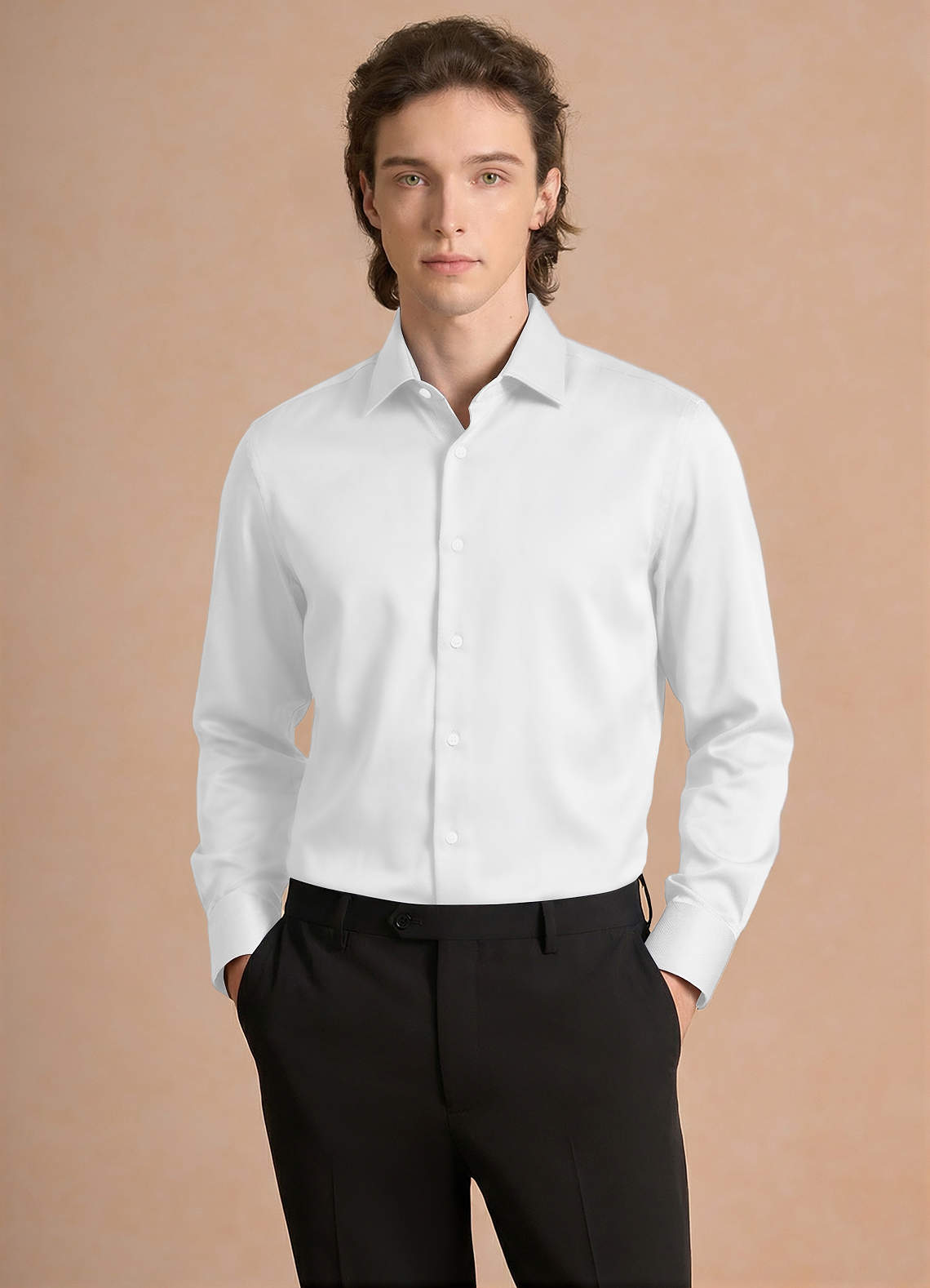 Julian White Stretch Satin Dress Shirt