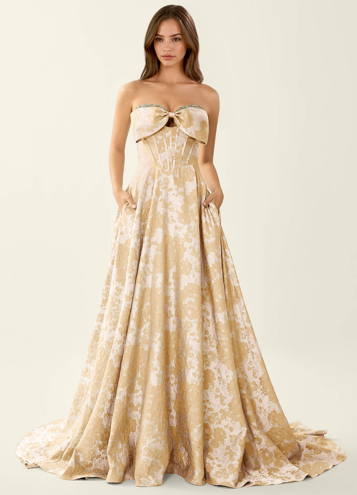 Leilani Champagne Corset Lace Up Back Beading Prom Dress
