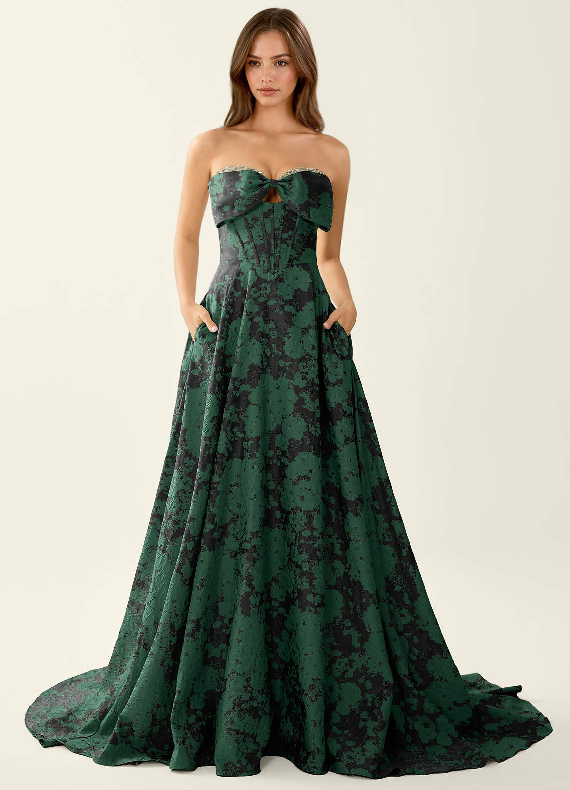 Leilani Emerald Black Corset Lace Up Back Beading Prom Dress