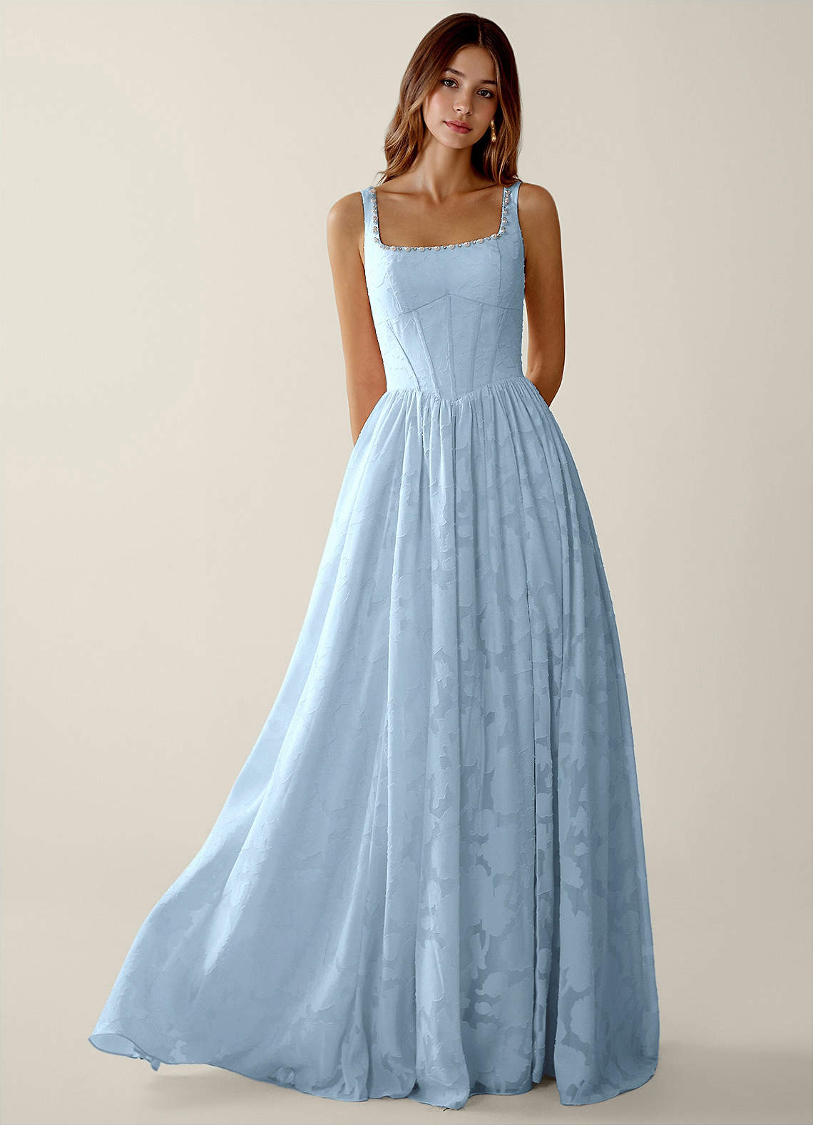 Megan Sky Blue Lace A-line Prom Dress