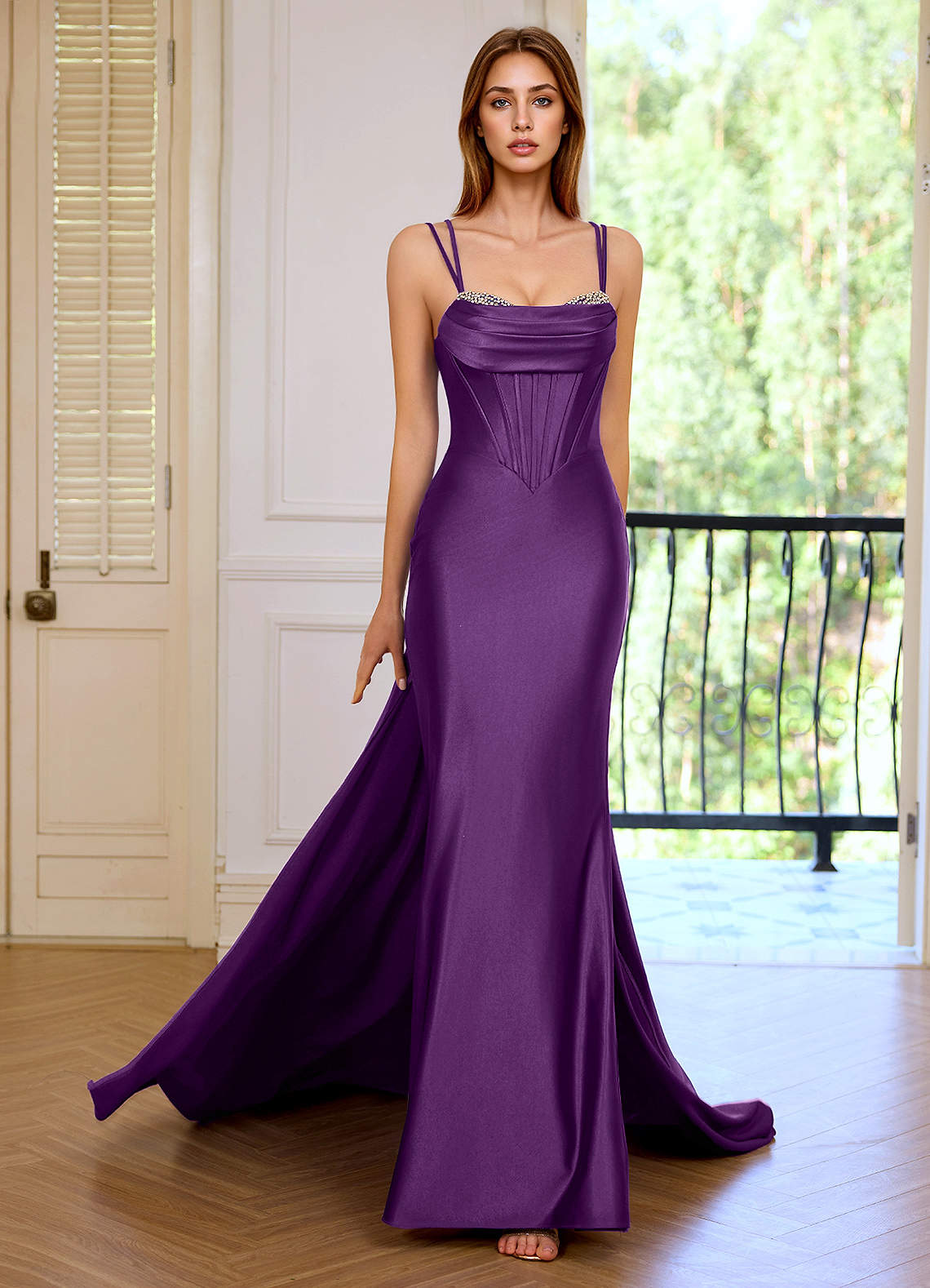 Montserrat Grape Rhinestones Stretch Satin Prom Dress