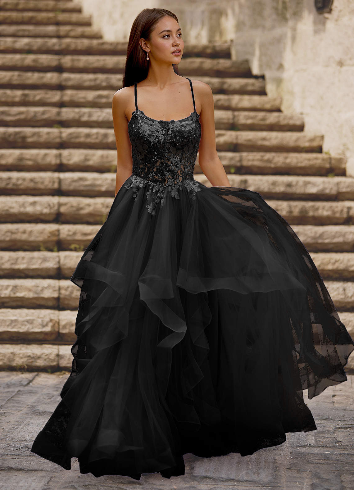 Mosaic Black Ruffle Prom Dress