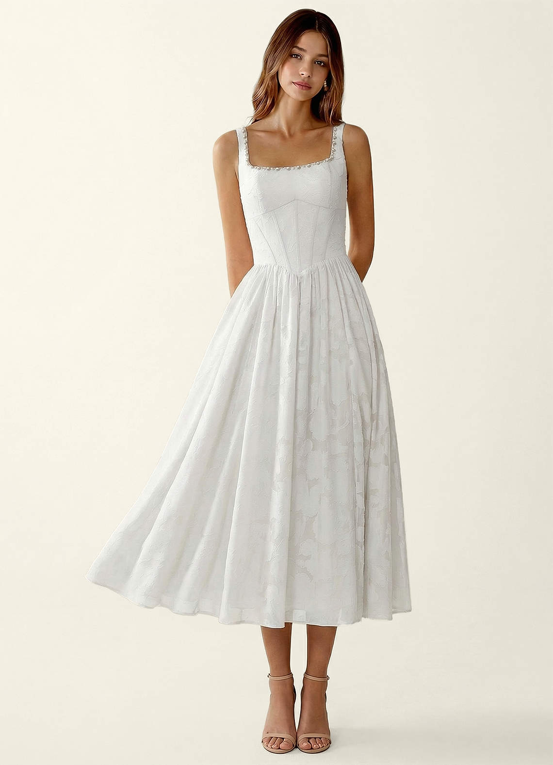Ottavia White Jacquard Midi A-line Graduation Dress