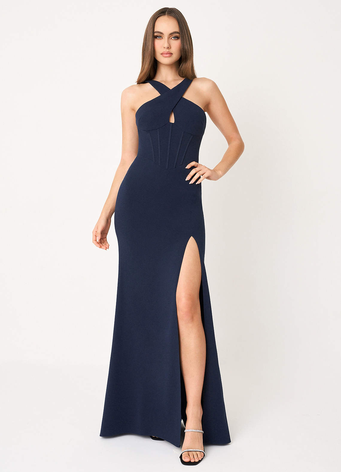 Reina Navy Cross Neck Maxi Dress