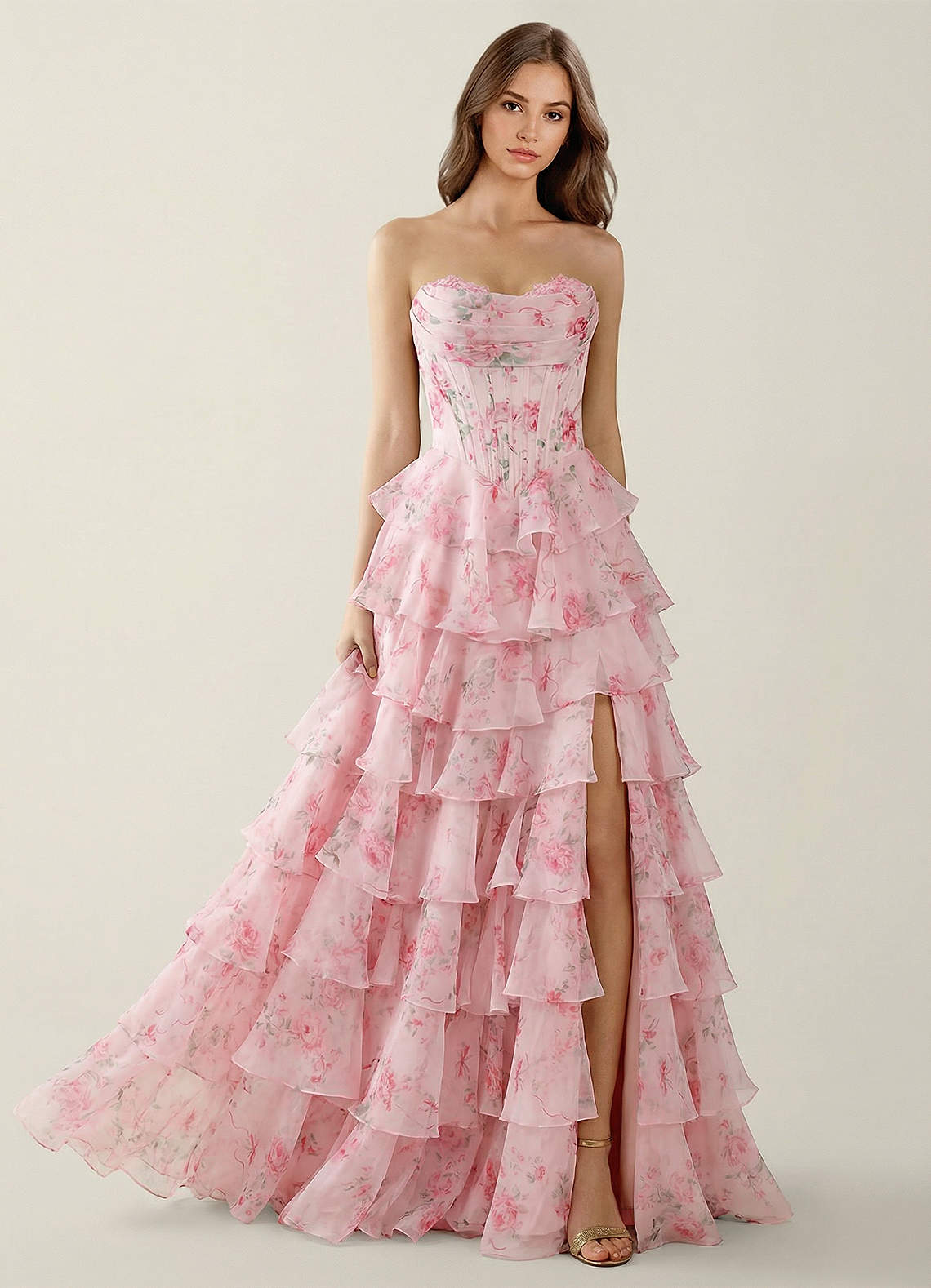 Samara Pink Ruffled A-Line Prom Dress