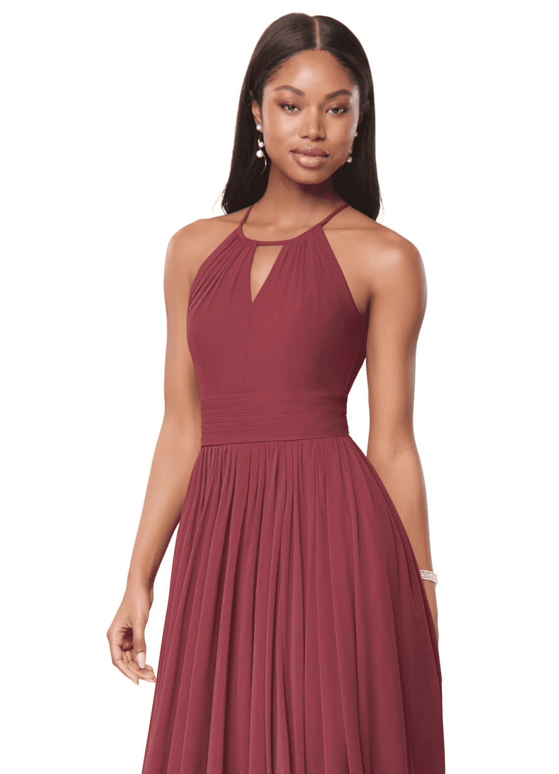 Cinnamon A-Line Pleated Chiffon Dress