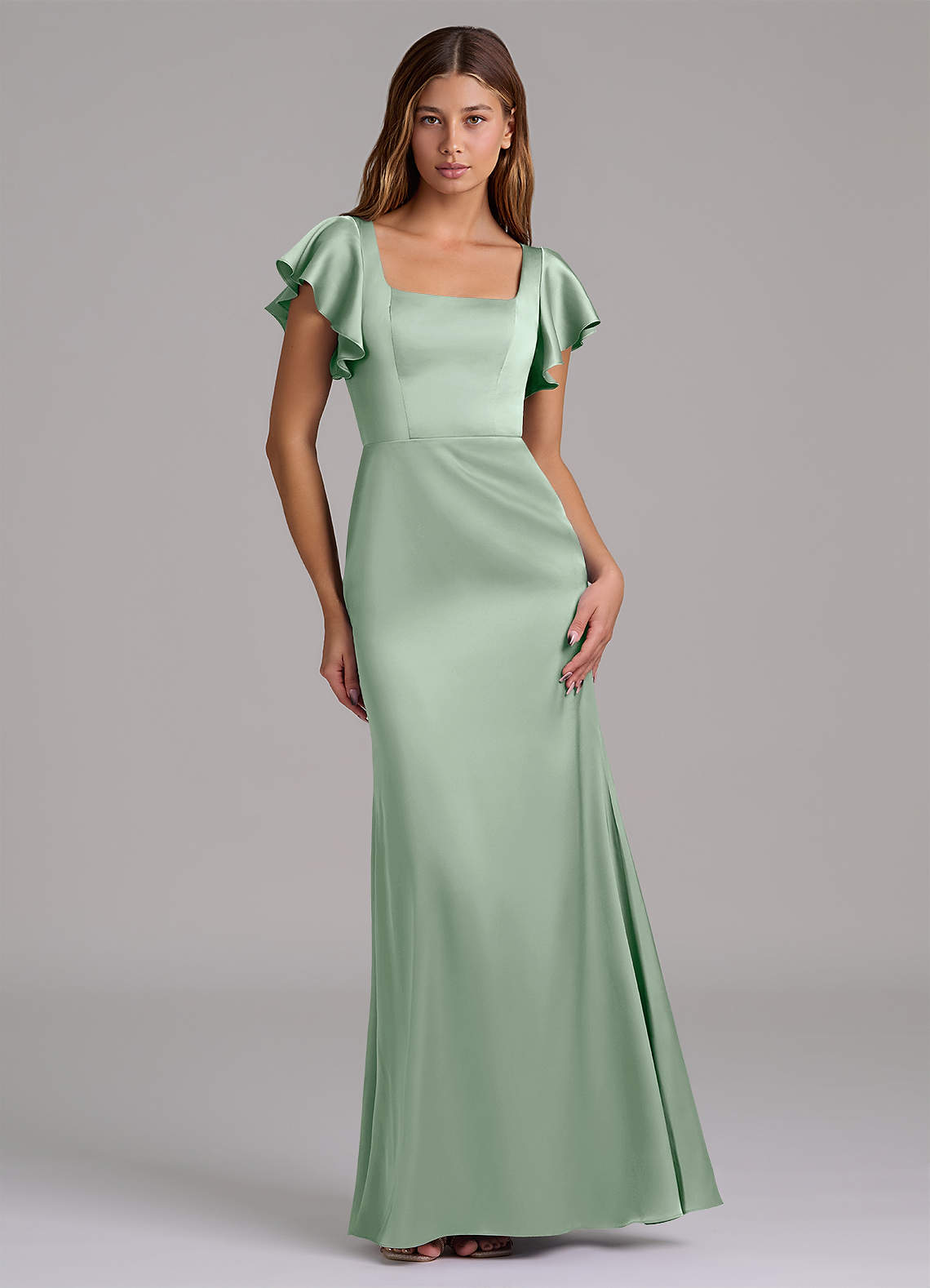 Emerald Mermaid Square Neckline Stretch Satin Dress