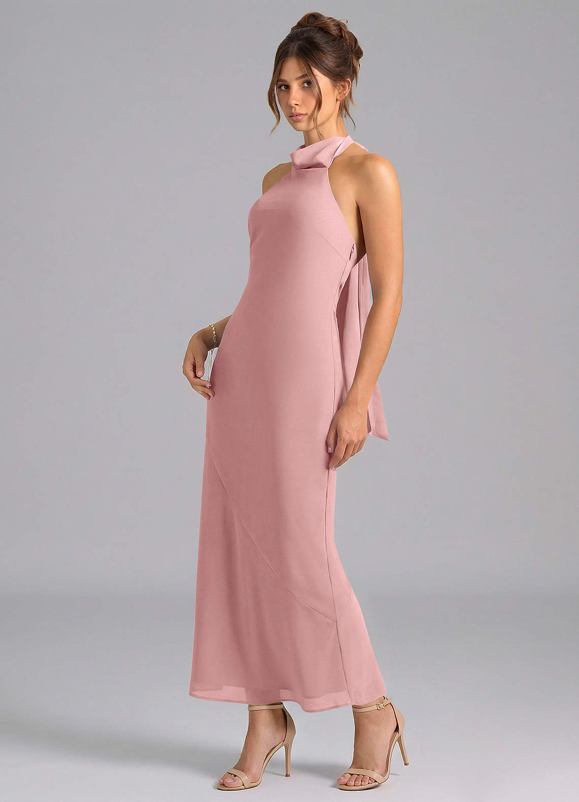 Dusty Rose Mermaid High Neck Chiffon Dress