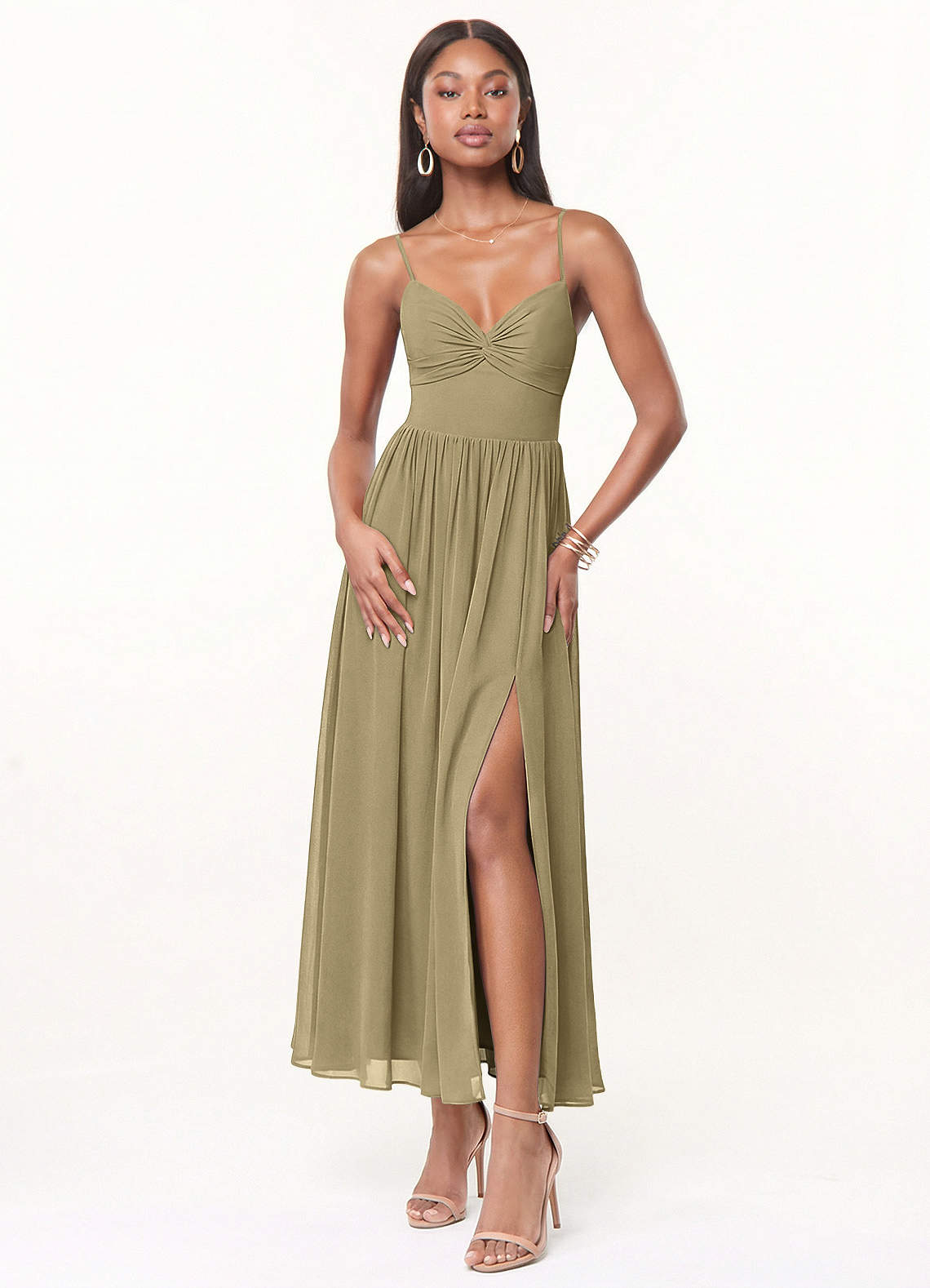 Moss Green A-Line Pleated Chiffon Dress