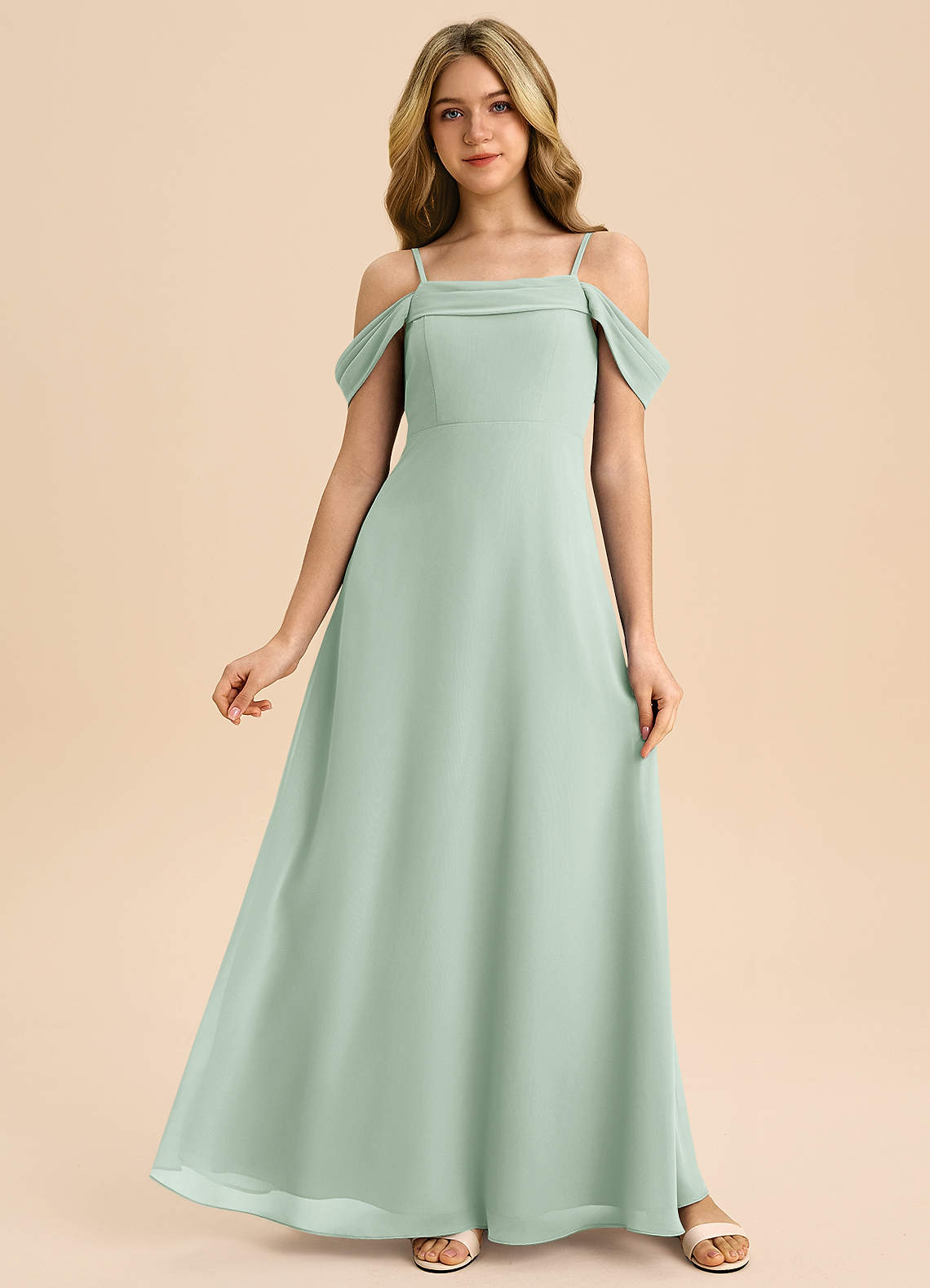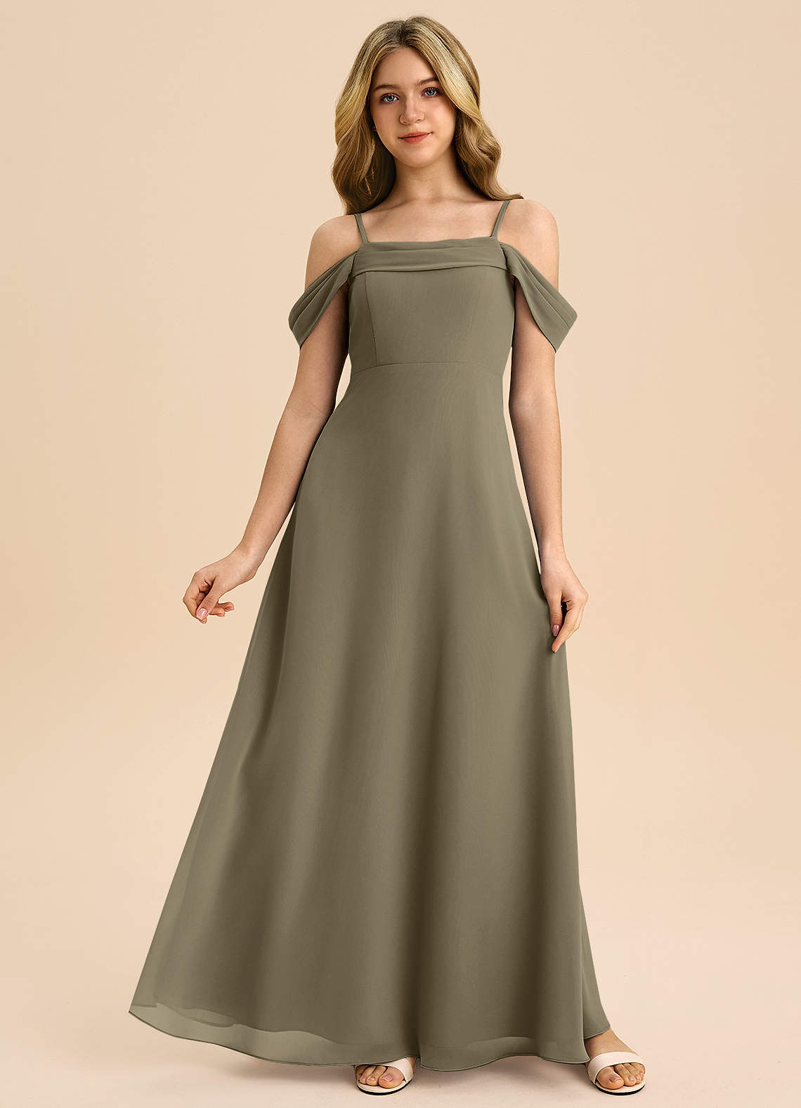 Agave A-Line Off the Shoulder Chiffon Dress