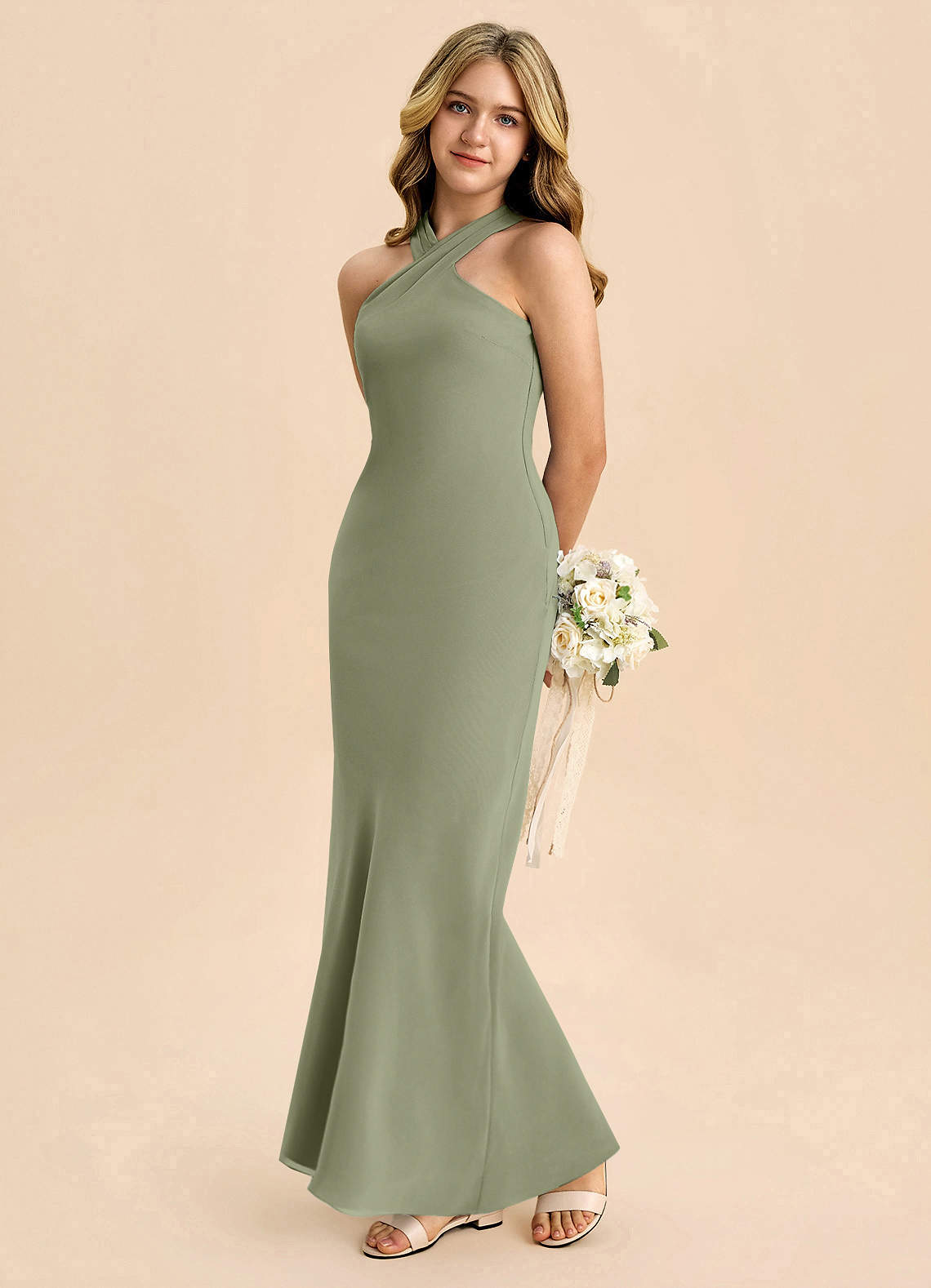 Dusty Sage Sheath Pleated Chiffon Dress