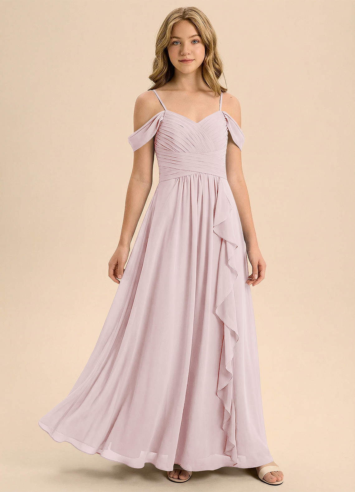 Blushing Pink A-Line Off the Shoulder Chiffon Dress