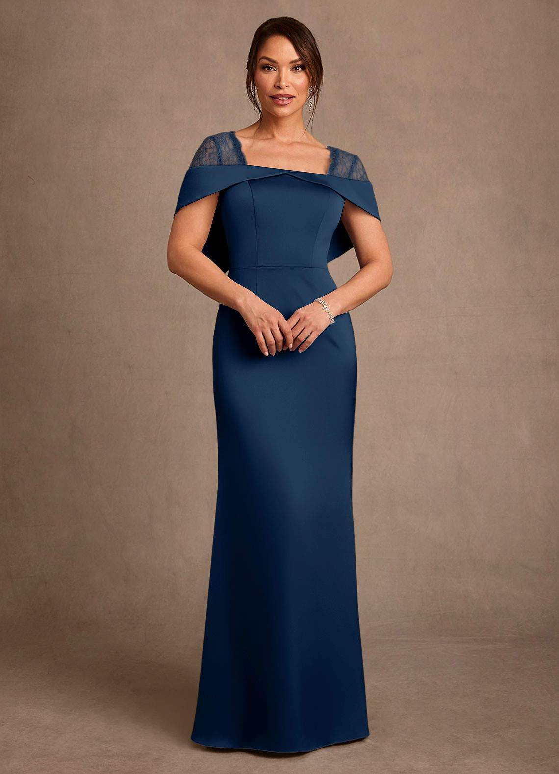 Dark Navy Sheath Lace Stretch Satin Dress