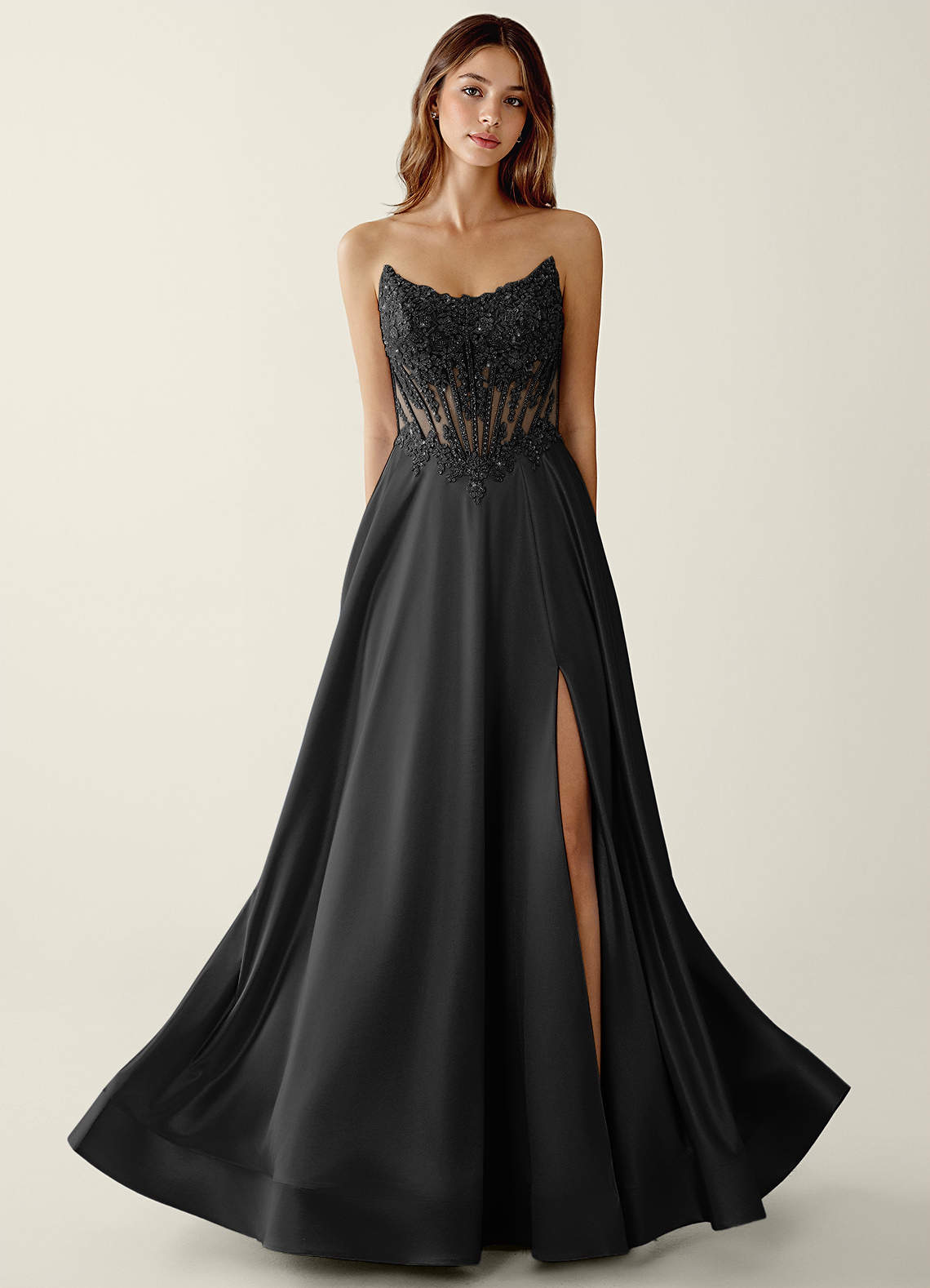Zuri Black Satin Wrap Beaing Corset A-line Prom Dress