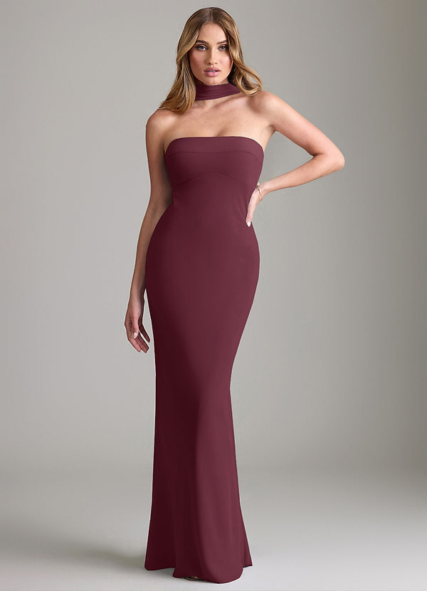 Vestido Cabernet de Chiffon de Linha A com Arco
