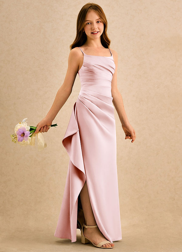 Vestido Rosa Corado de Cetim fosco de Linha A com Arco