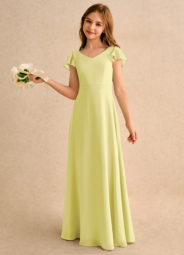 Vestido Sorvete De Limão de Chiffon de Linha A com com mangas