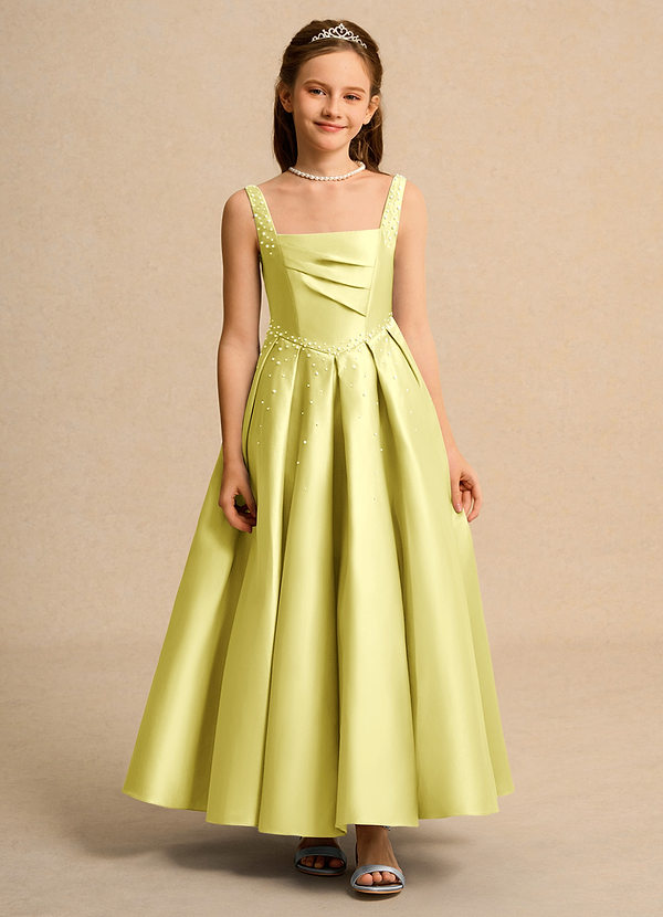 Vestido Sorvete De Limão de Cetim fosco de Linha A com Plissado