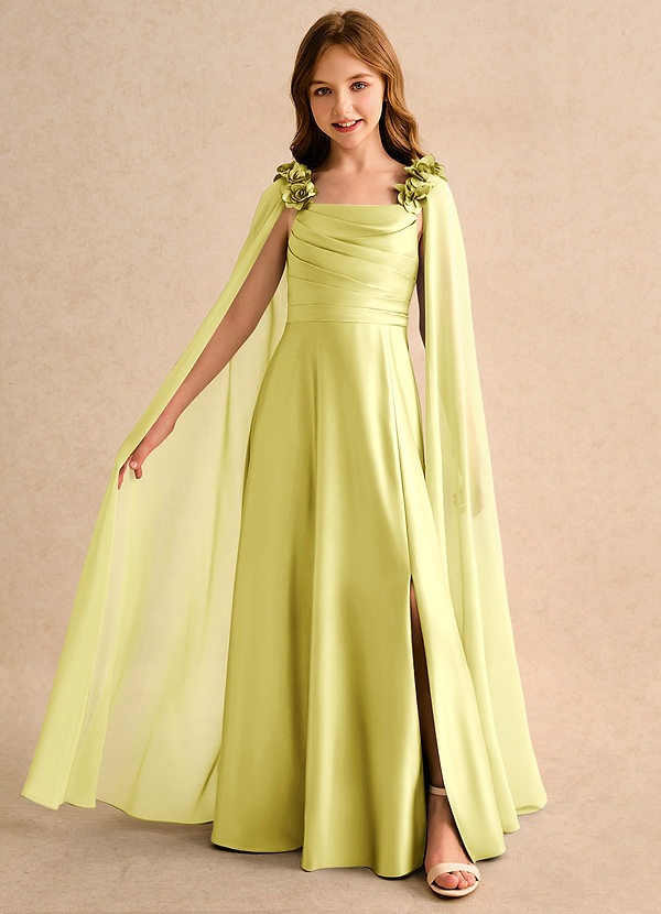 Vestido Sorvete De Limão de Cetim fosco de Linha A com Um ombro
