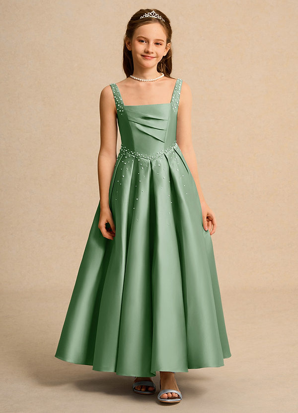 Vestido Matchá de Cetim fosco de Linha A com Plissado
