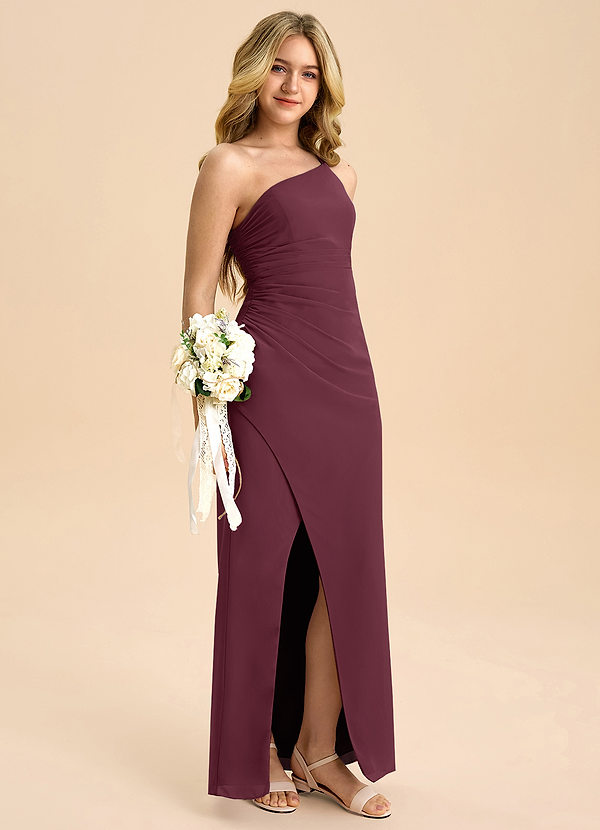 Vestido Cabernet de Cetim elástico de Linha A com Fenda Lateral