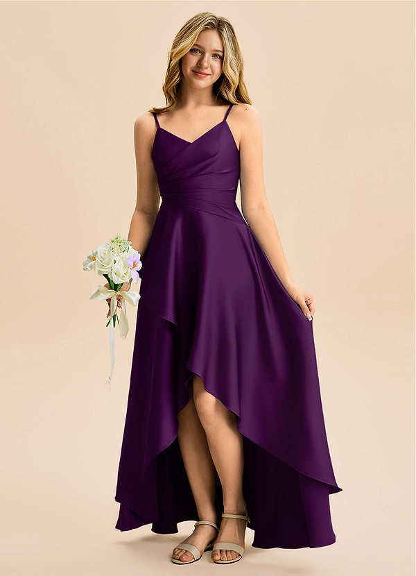 Vestido Uva de Cetim elástico de Linha A com Plissado