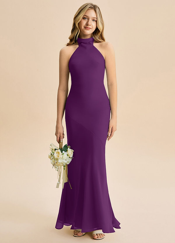 Vestido Uva de Chiffon de sereia com Pescoço alto