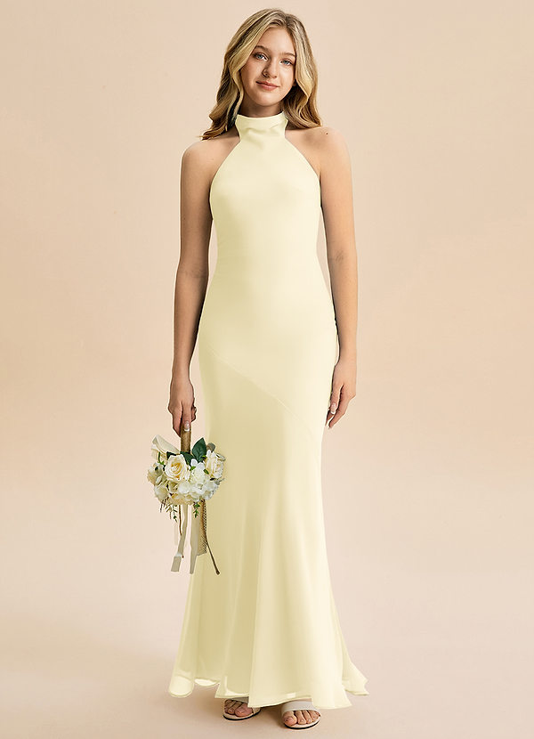Vestido Sorvete De Limão de Chiffon de sereia com Pescoço alto