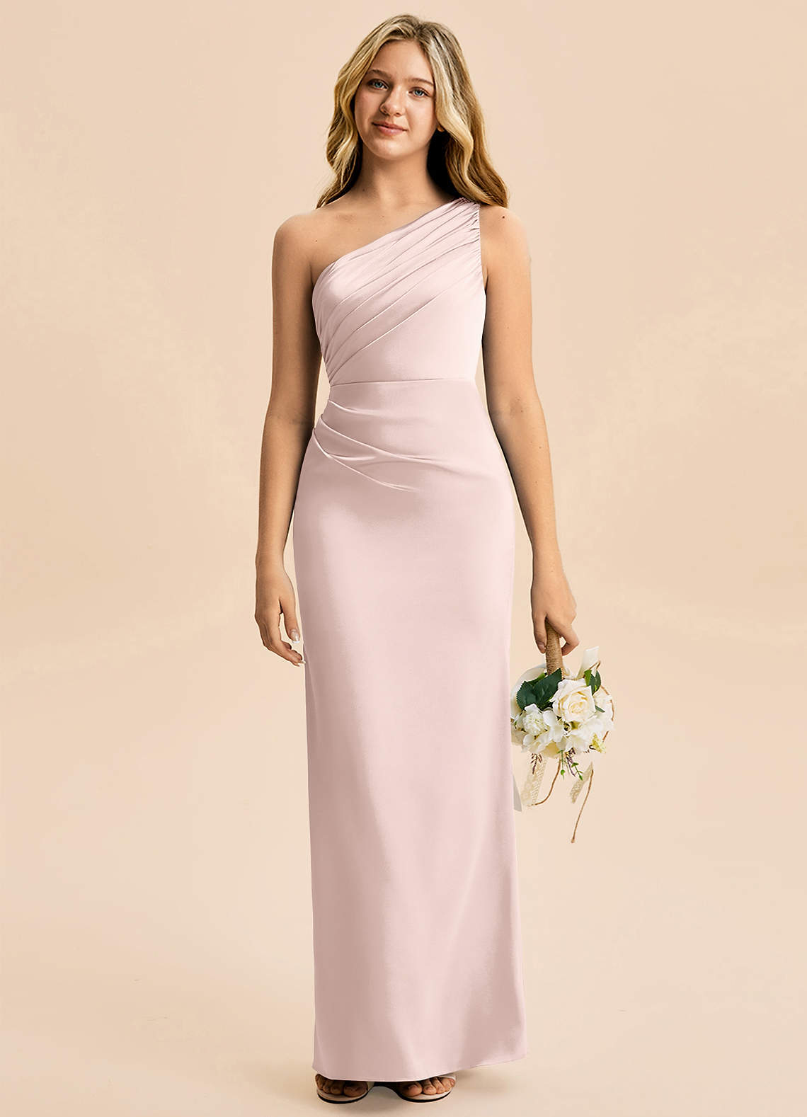 Vestido Rosa Corado de Cetim elástico de Bainha com Plissado