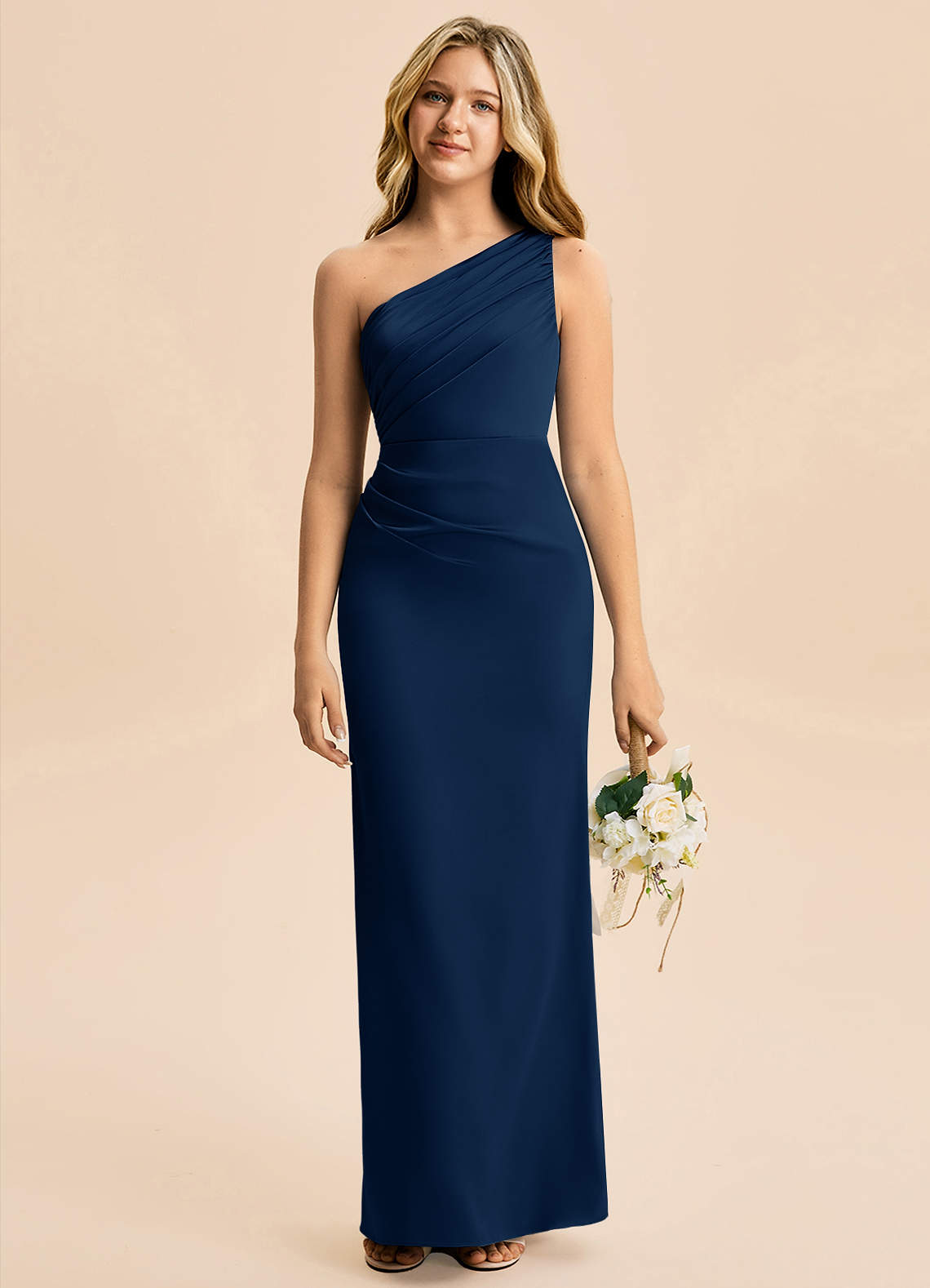 Vestido Azul Marinho de Cetim elástico de Bainha com Plissado