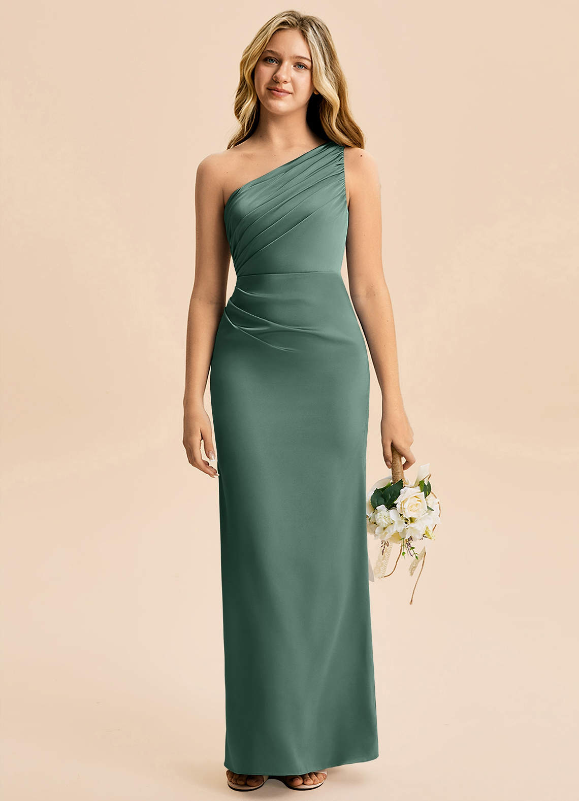Vestido Eucalipto de Cetim elástico de Bainha com Plissado