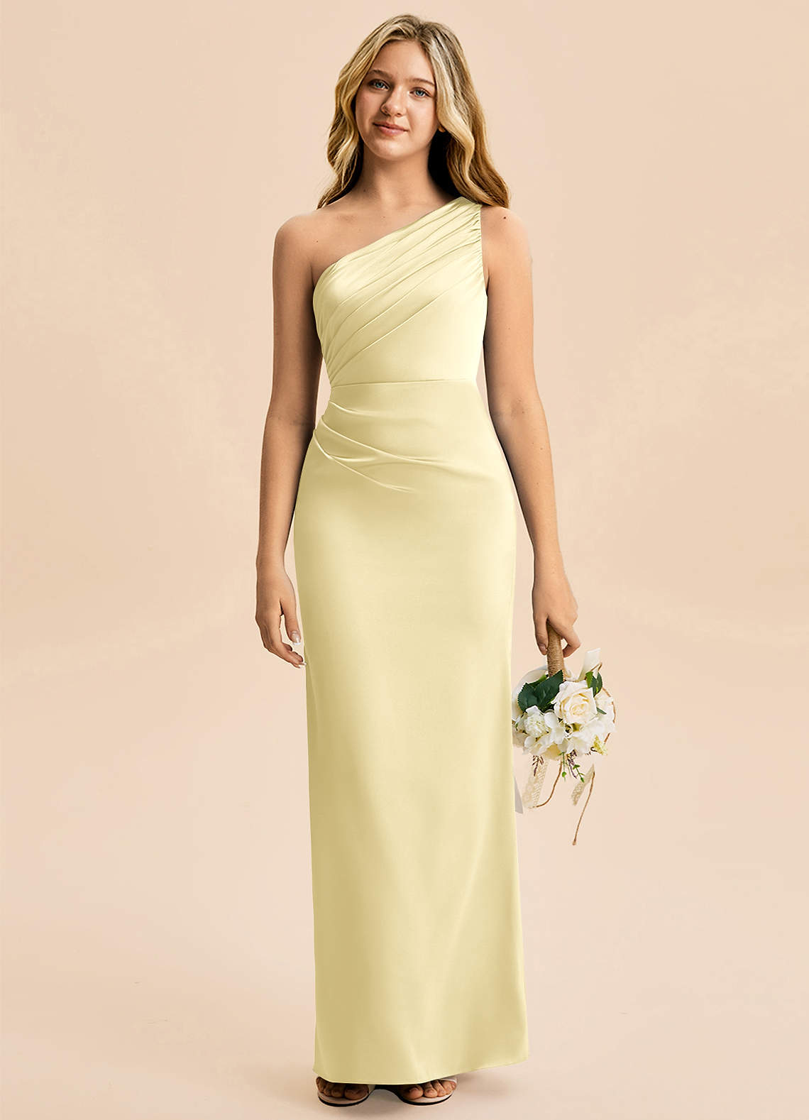 Vestido Sorvete De Limão de Cetim elástico de Bainha com Plissado
