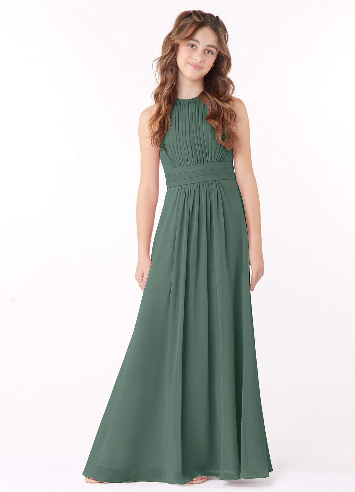 Vestido Musgo Marinho de Chiffon de Linha A com Plissado