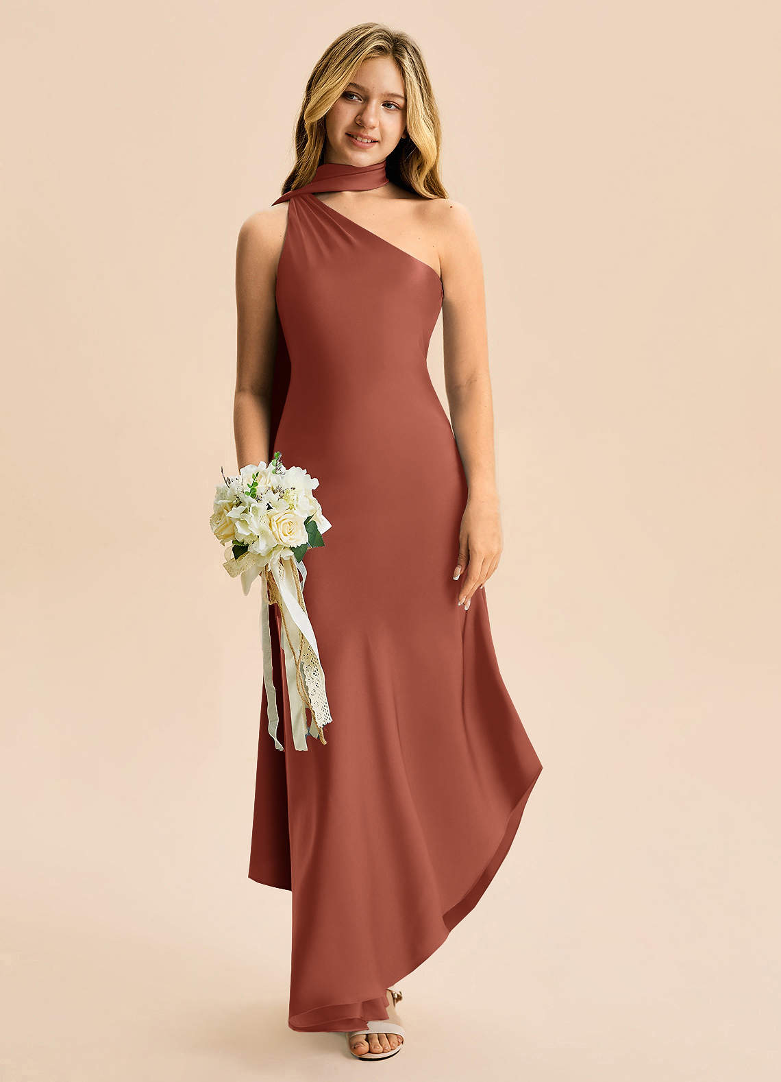 Vestido Castanho Aloirado de Cetim elástico de Bainha com Plissado
