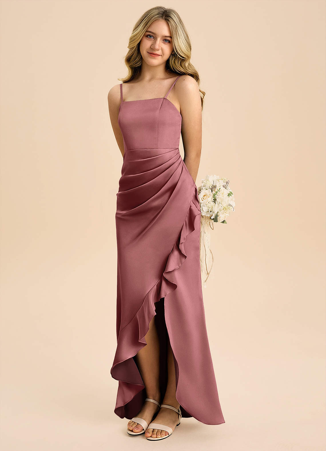Vestido Ametista de Cetim elástico de Bainha com Plissado