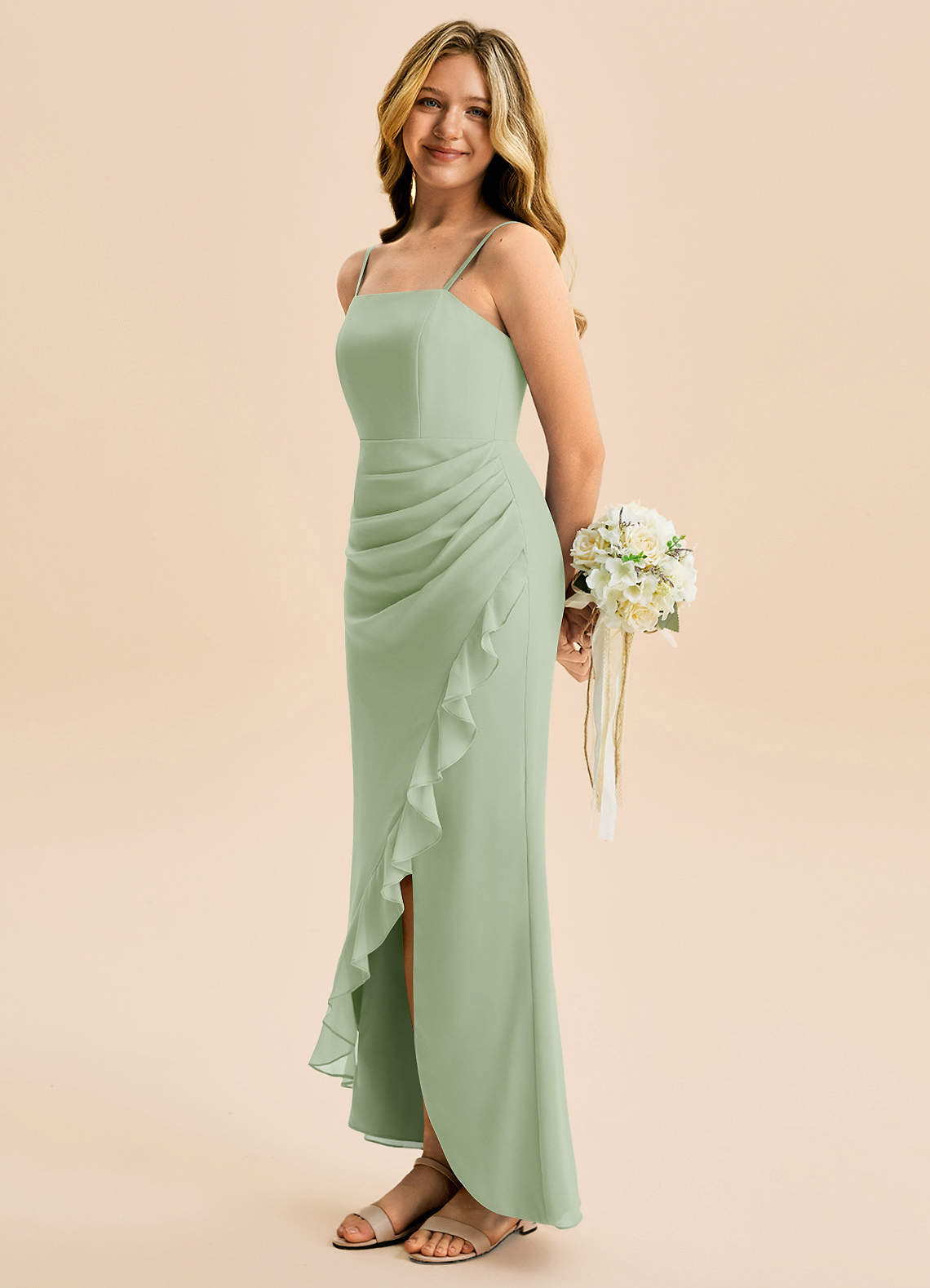 Vestido Dusty Sage de Chiffon de Bainha com Plissado