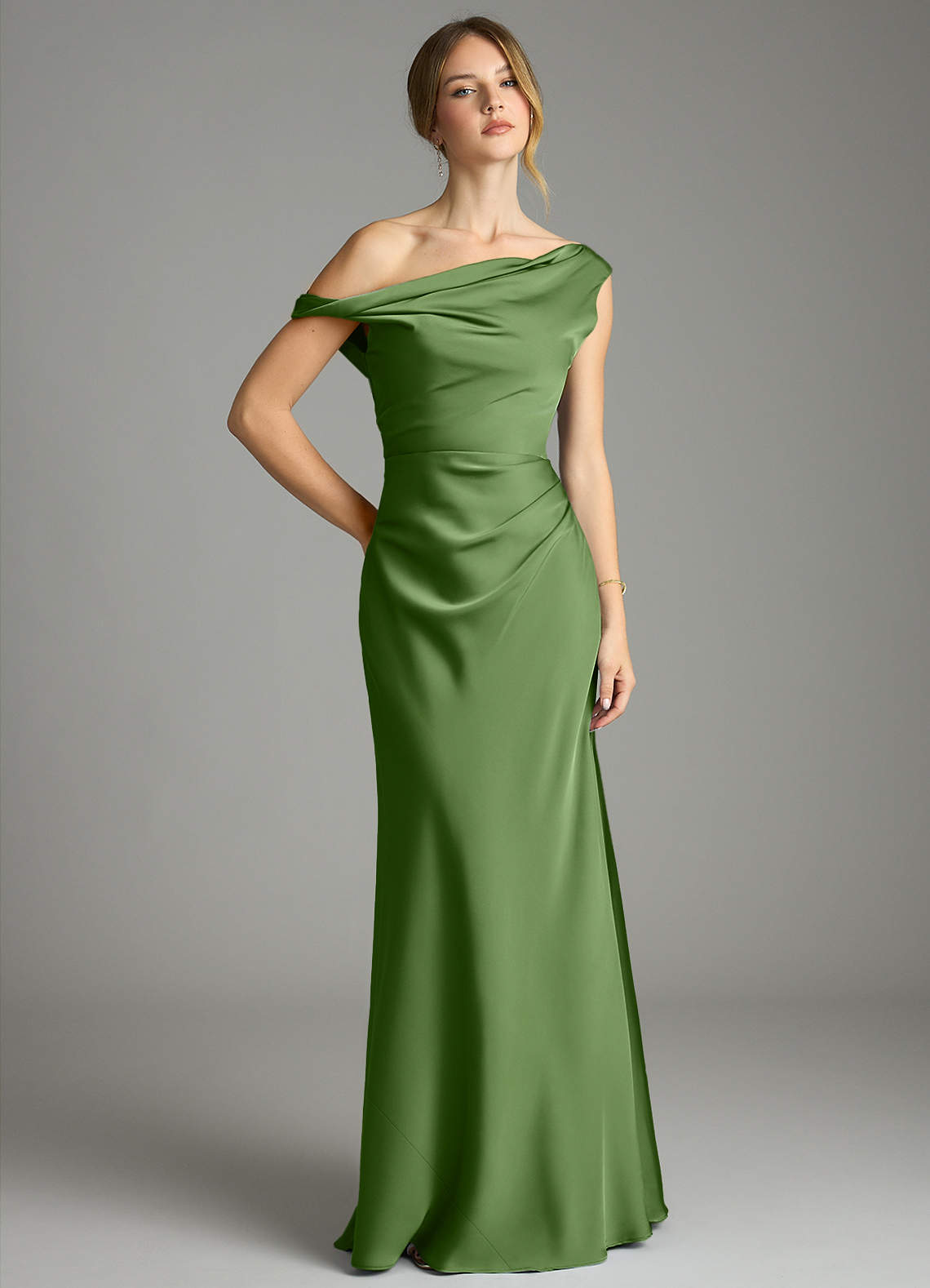 Vestido Manjericão de Cetim elástico de sereia com Fora do ombro