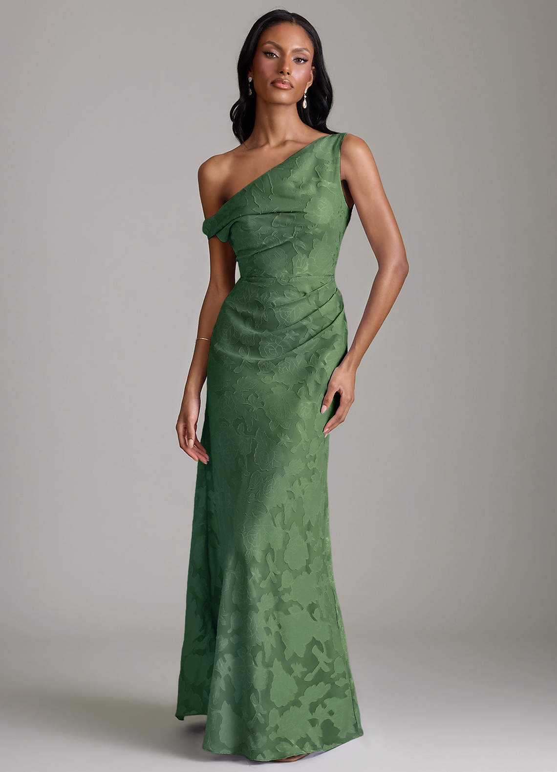 Vestido Eucalipto de Esgotamento Floral de sereia com Fora do ombro