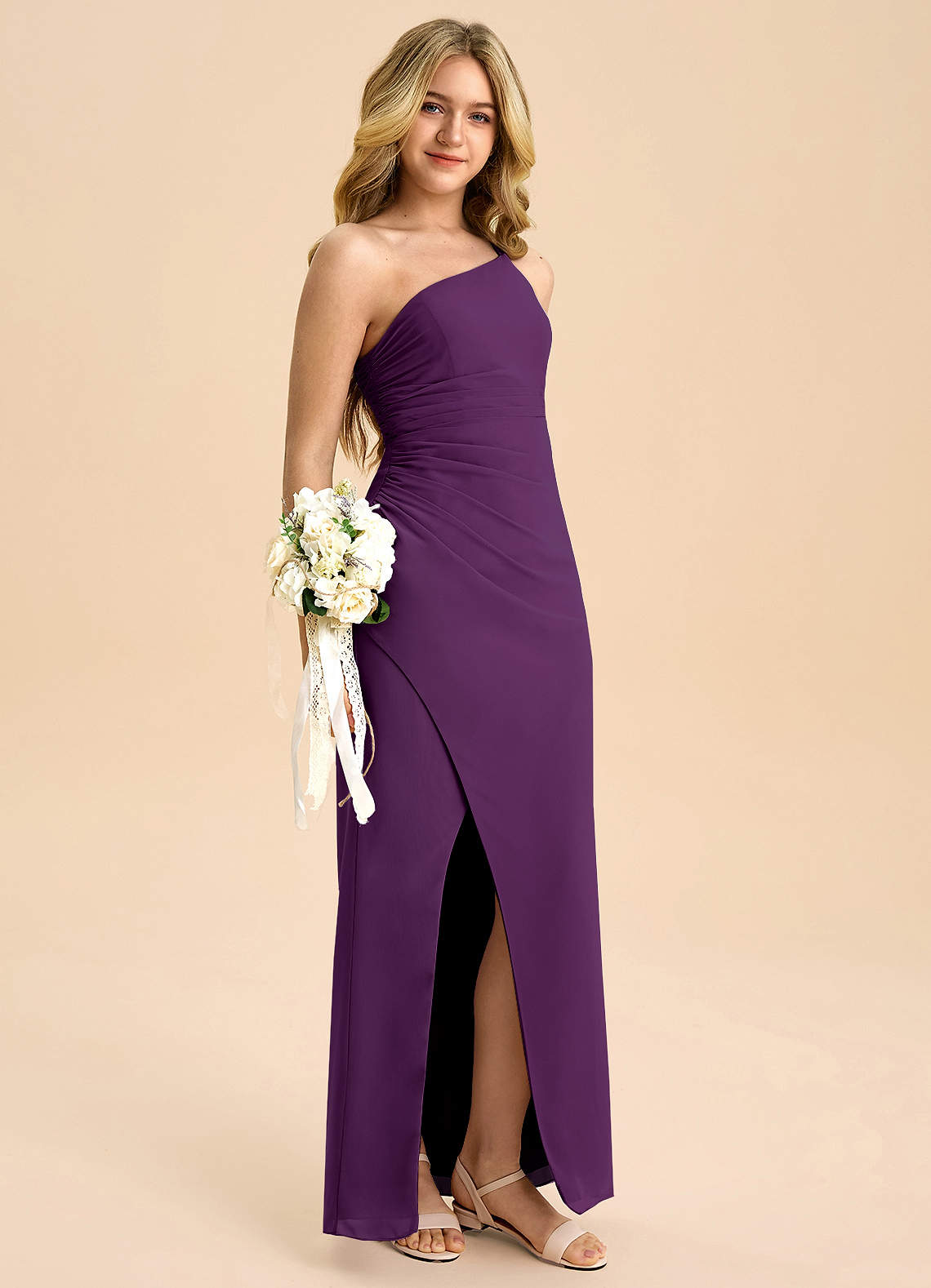 Vestido Uva de Chiffon de Linha A com Plissado