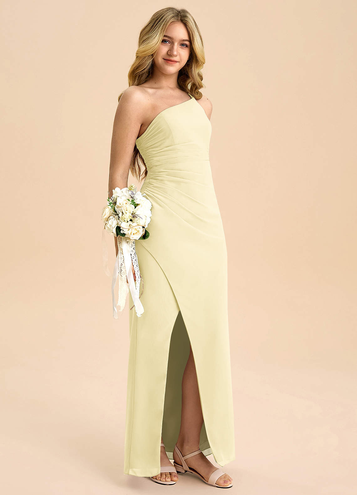 Vestido Sorvete De Limão de Chiffon de Linha A com Plissado