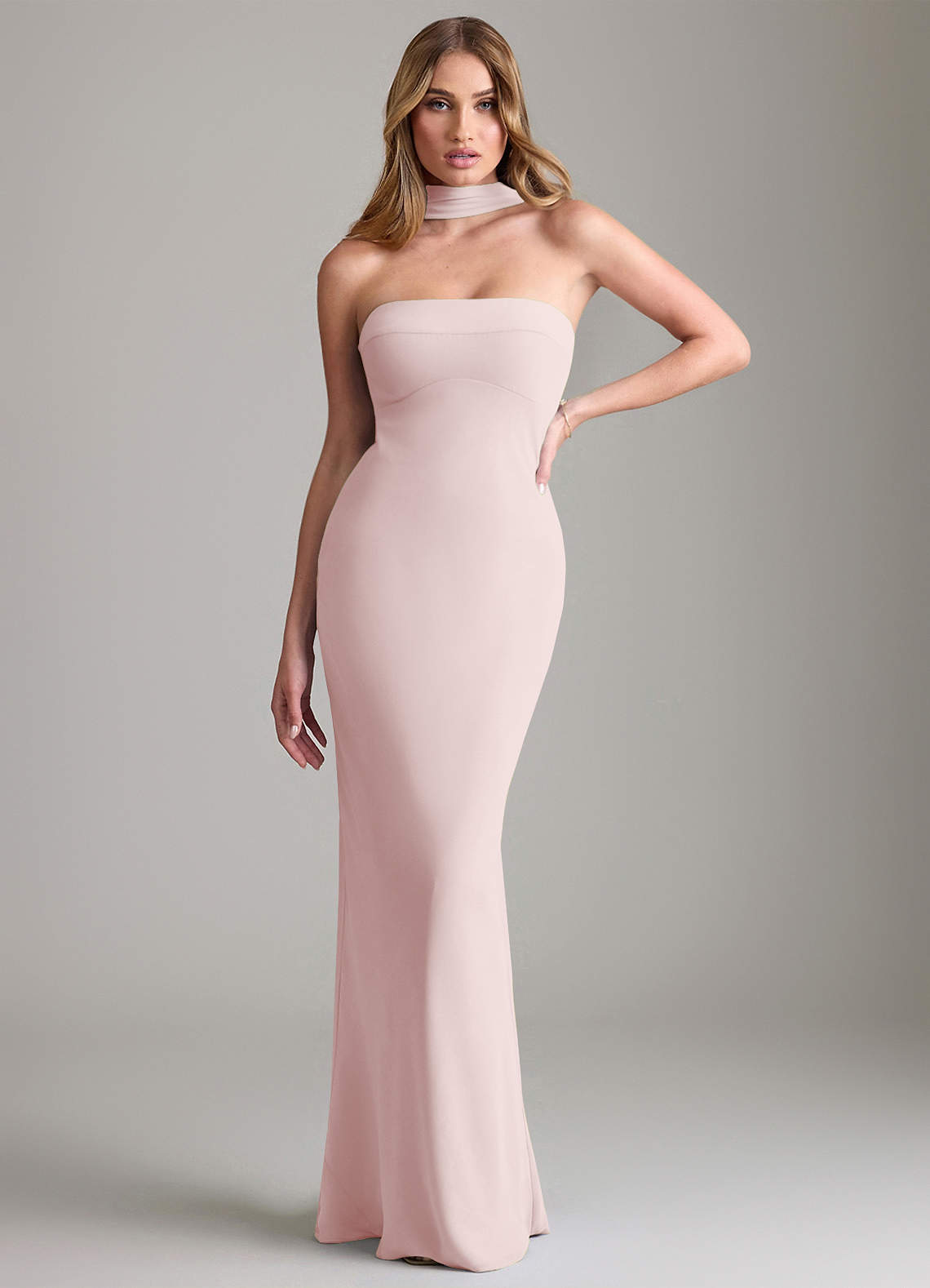 Vestido Rosa Corado de Chiffon de sereia com Fora do ombro