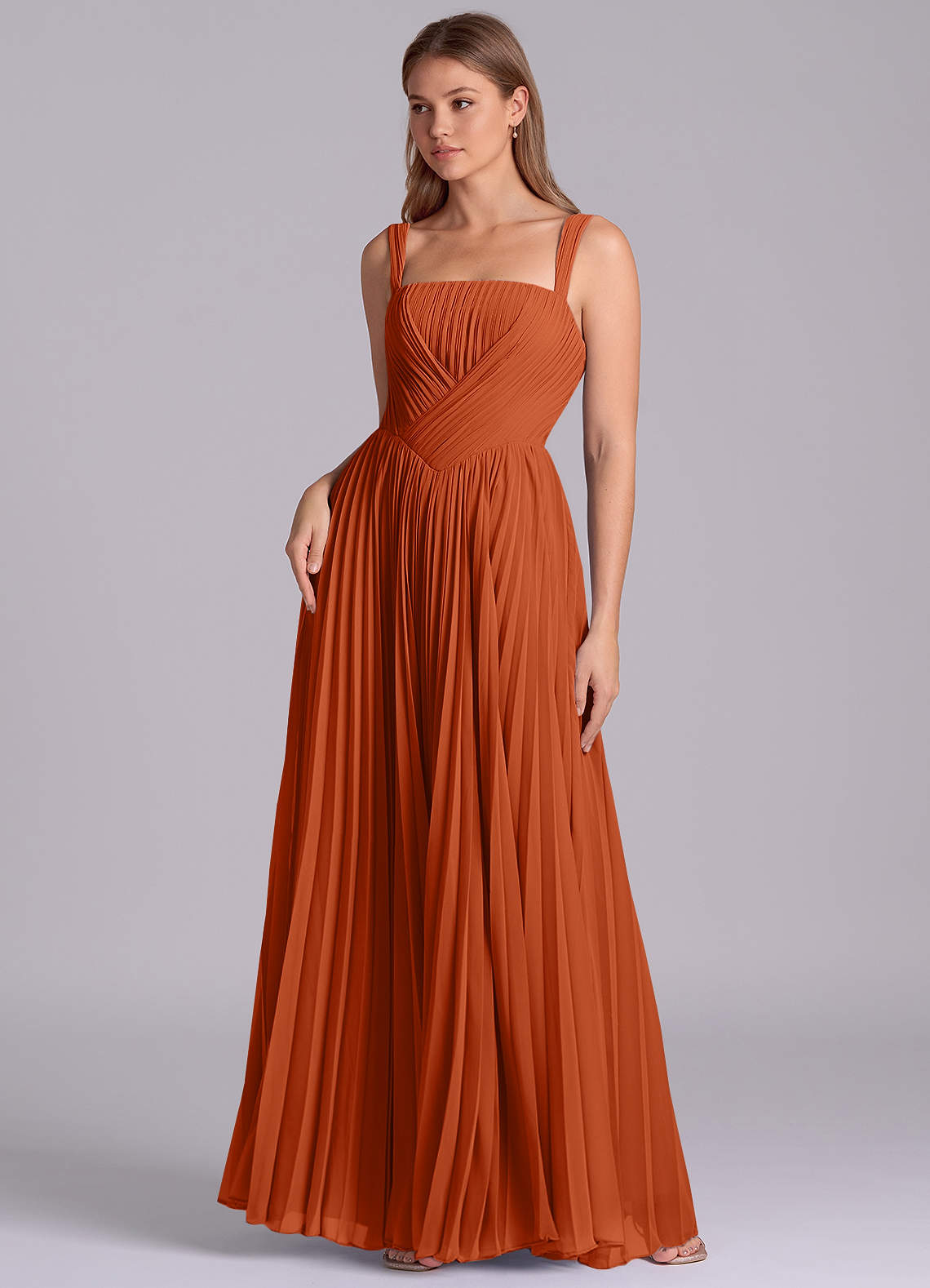 Vestido Laranja Queimada de Chiffon de Linha A com Plissado