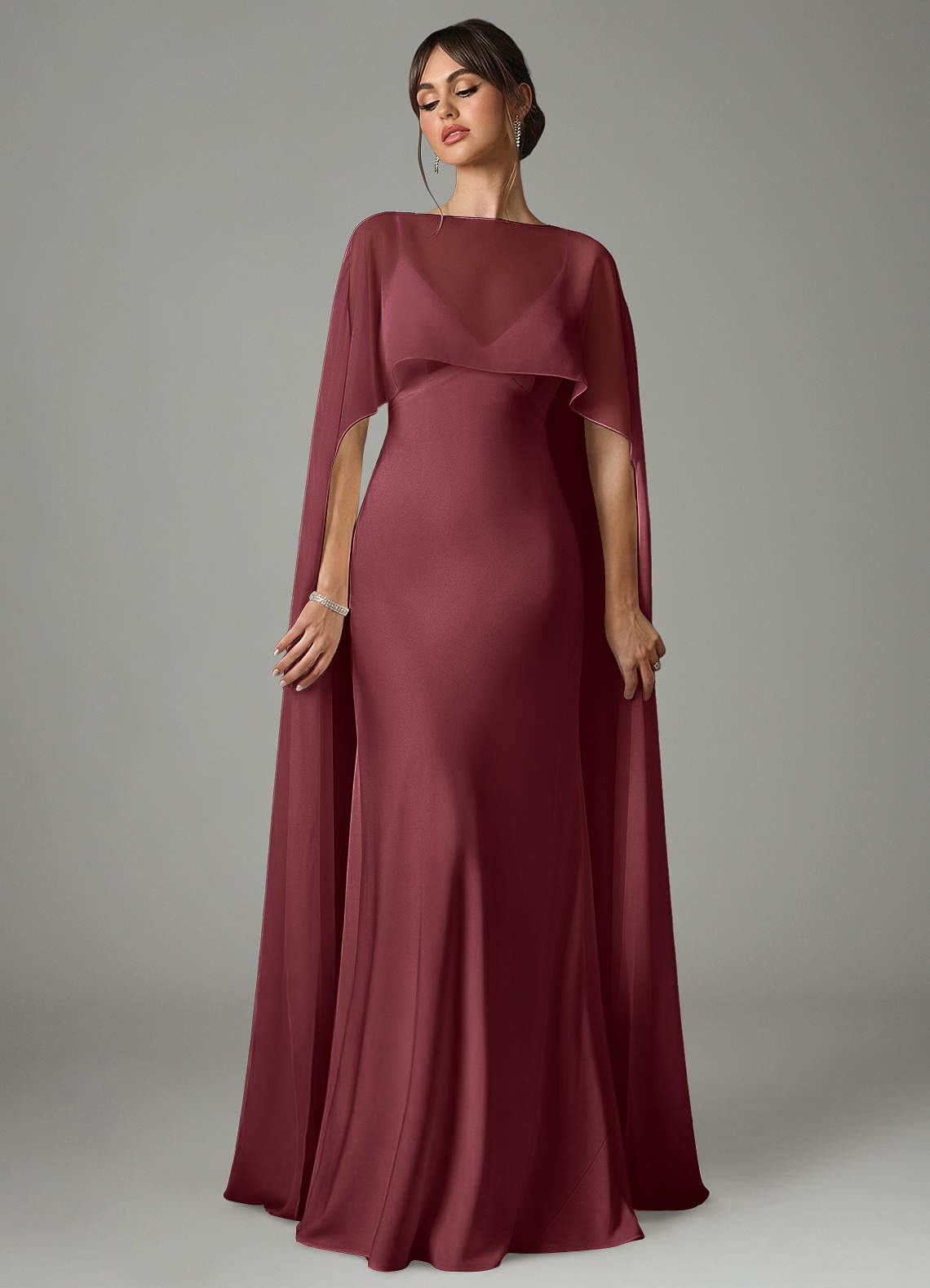 Vestido Merlot de Cetim elástico de Linha A