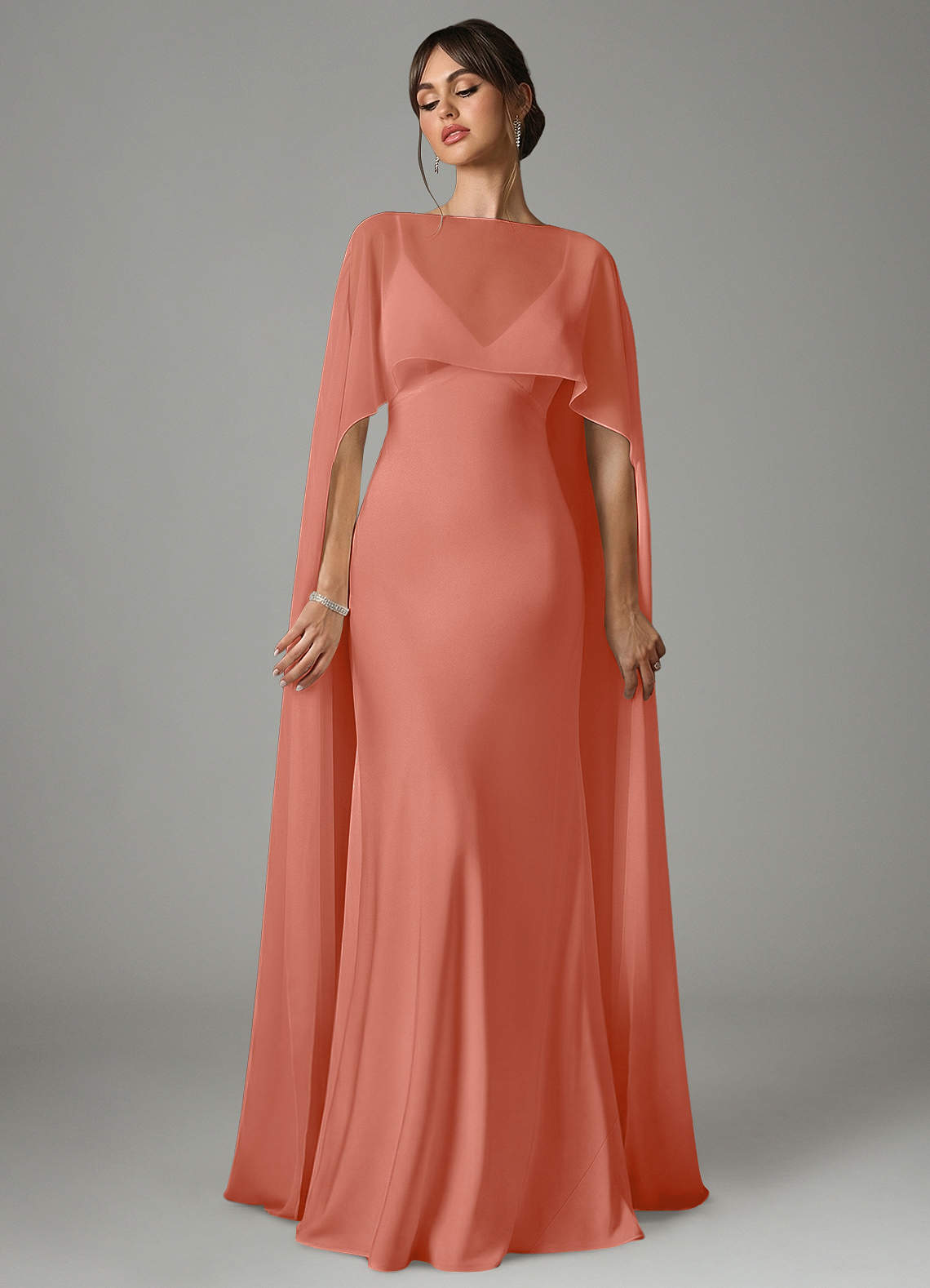 Vestido Rosa Salmão de Cetim elástico de Linha A