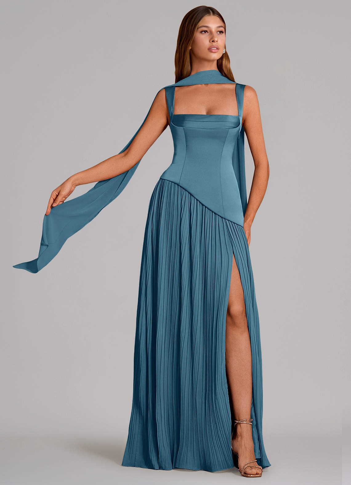 Vestido Bermudas de Cetim elástico de Linha A com Plissado