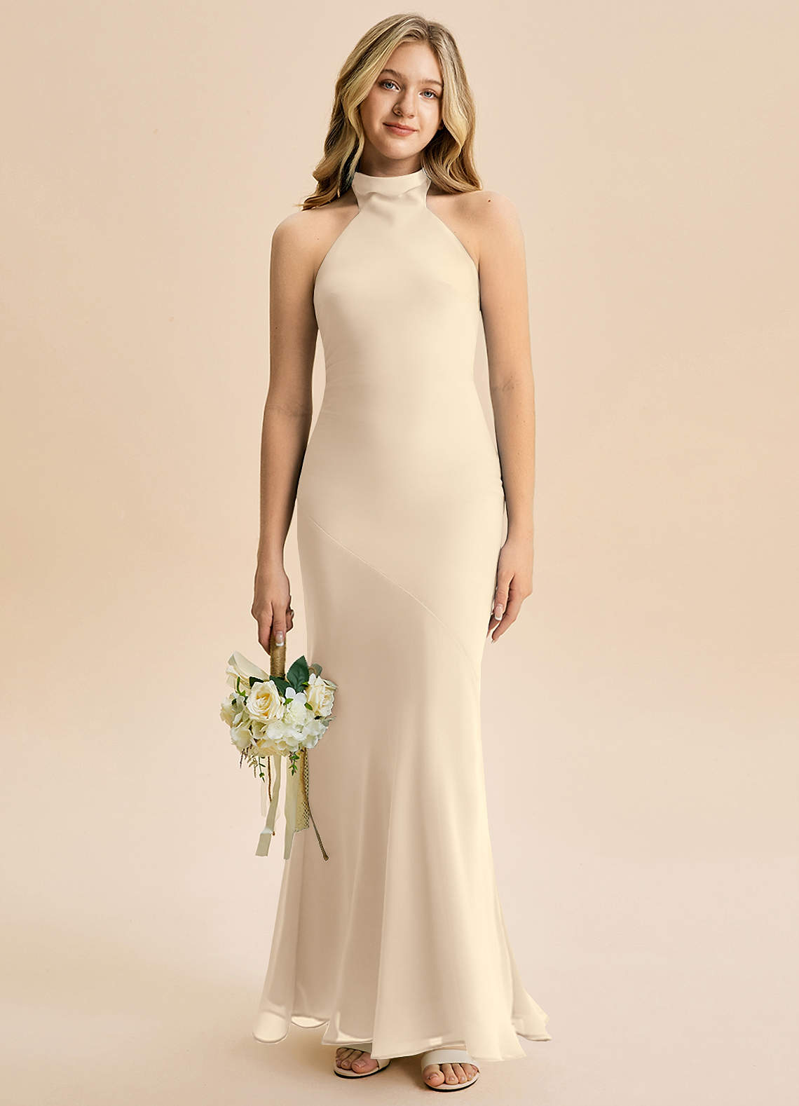 Vestido Champanhe de Chiffon de sereia com Pescoço alto