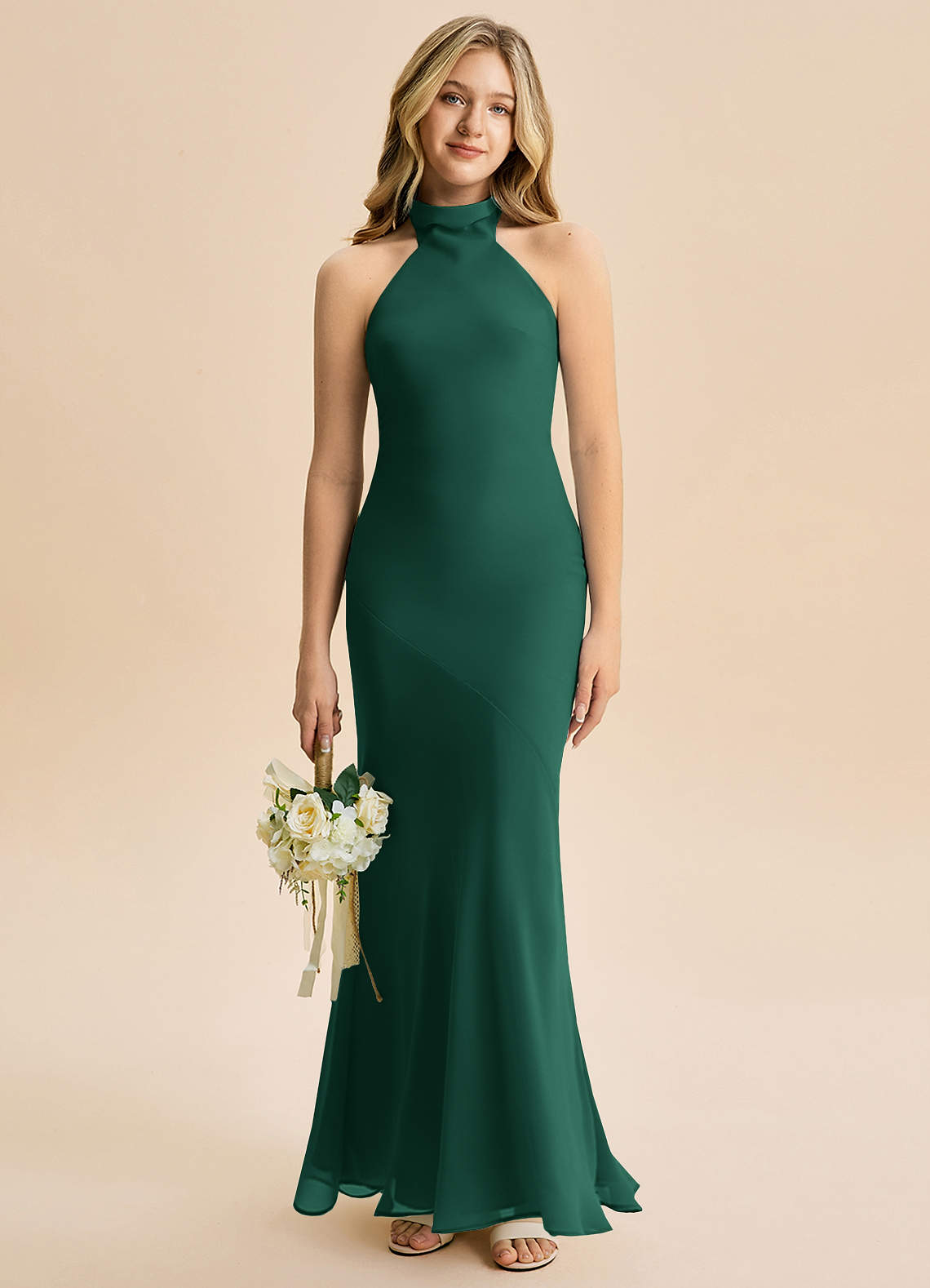 Vestido Esmeralda de Chiffon de sereia com Pescoço alto